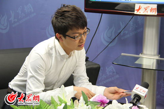 大眾網(wǎng)記者與龍口“最美女孩”刁娜現(xiàn)場(chǎng)連線。(劉寶才 攝)