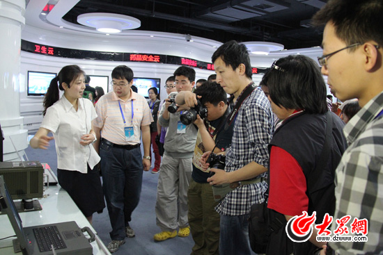 [提要] 13日下午,“科學發(fā)展新山東----第八屆中國網絡媒體山東行”采訪團來到位于濟南經十東路的浪潮科技園。在浪潮云計算創(chuàng)新中心,記者們親身體驗了衛(wèi)生云、媒體云等多種云計算應用給人們生活帶來的神奇改變,這些看得見、摸得著的“云”讓許多記者感嘆科技創(chuàng)新的獨特魅力,從云計算到云服務,浪潮讓“浮云”落地了。