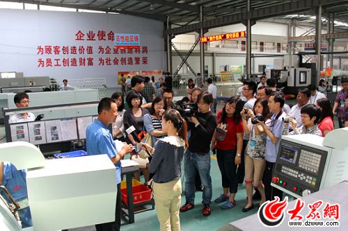 記者們現(xiàn)場采訪呈瑞黨員技術(shù)帶頭人。(馬鑫 攝)