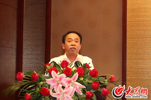 濰坊市市委常委、宣傳部長(zhǎng)初寶杰出席濰坊市新聞發(fā)布會(huì)并致辭。(馬鑫 攝)