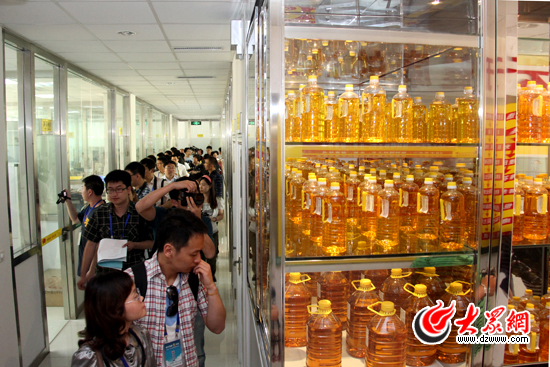 科學(xué)發(fā)展新山東——“魯花杯”第八屆中國網(wǎng)絡(luò)媒體山東行采訪團(tuán)走進(jìn)魯花集團(tuán)參觀采訪。 (馬鑫 攝)