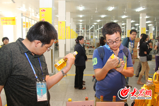 魯花5S壓榨花生油成為記者們關(guān)注的焦點(diǎn)。(馬鑫 攝)