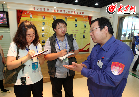 兗礦國泰化工有限公司黨委書記王天峰接受采訪團大眾日報記者、大眾網記者采訪。(盛堃 攝影)