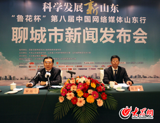 聊城市委書記、市人大常委會主任宋遠方出席科學發(fā)展新山東——“魯花杯”第八屆中國網(wǎng)絡(luò)媒體山東行聊城市新聞發(fā)布會。(盛堃 攝影)