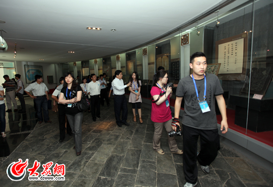 采訪團記者走進曹州牡丹園的中國牡丹博物館。(盛堃 攝影)