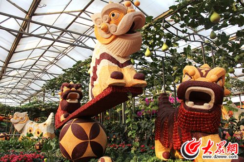 除了精美的果蔬,神奇的科技,令人流連忘返的意境,還有用蔬菜、果實、種子、干果等組合而成的310多個蔬菜藝術景觀,讓游客不僅感嘆科技的神奇,“只有想不到的,沒有做不到的。”