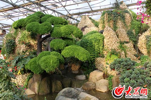 展館內最大的景觀“錦繡江山”全部由生姜打造。(馬鑫 攝)