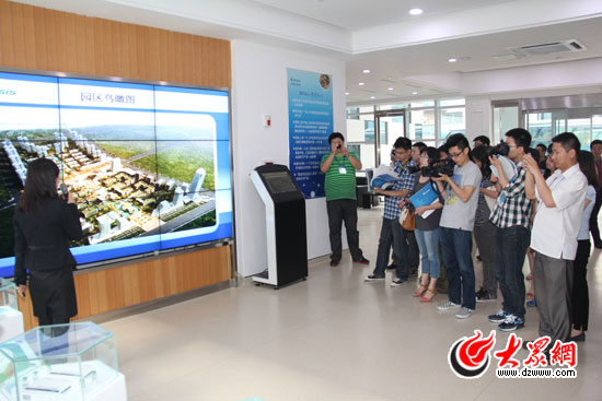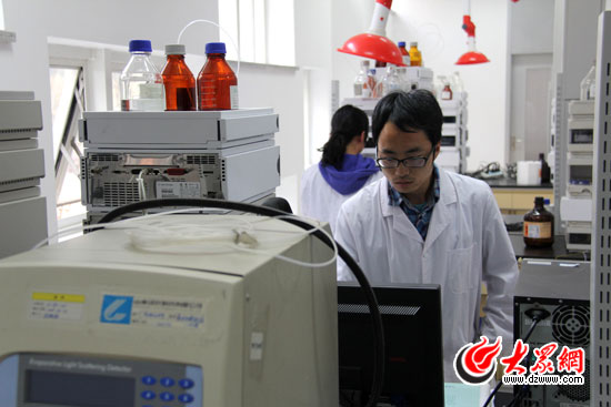 下午,采訪團到達山東國際生物科技園,綜合科研大樓里安靜整潔,工作人員身穿白色的工作服,正在實驗室里緊張而有序地工作。實驗室門外的洗眼器和淋浴吸引了記者們的注意,當大家研究這個設備的功能時,接待專員崔蘇楠向大家解釋說,如果工作人員在實驗過程中眼睛被化學藥品灼傷,可迅速地在附近找到這個設備進行簡單處理,為去醫院做進一步治療爭取時間。