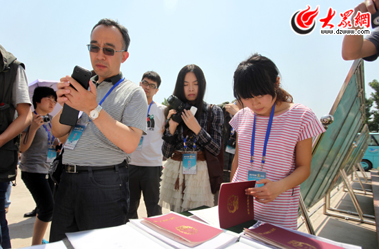 采訪團(tuán)記者翻閱《農(nóng)村土地使用產(chǎn)權(quán)證》。(盛堃 攝影)