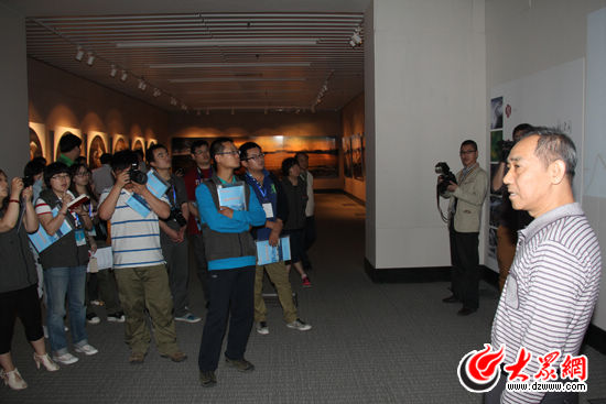 記者們參觀位于威海市民文化藝術中心的美術館。(馬鑫 攝)