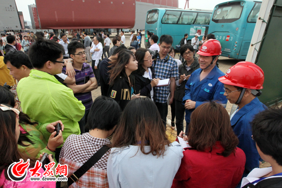 青島北海船舶重工有限責(zé)任公司相關(guān)負(fù)責(zé)人接受采訪團(tuán)記者采訪。(盛堃 攝影)