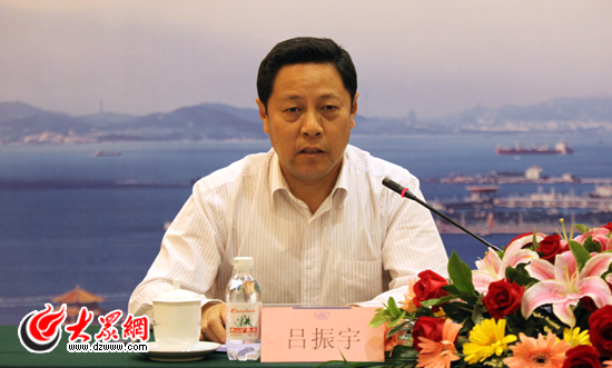 青島市委宣傳部常務(wù)副部長呂振宇主持新聞發(fā)布會。(盛堃 攝影)