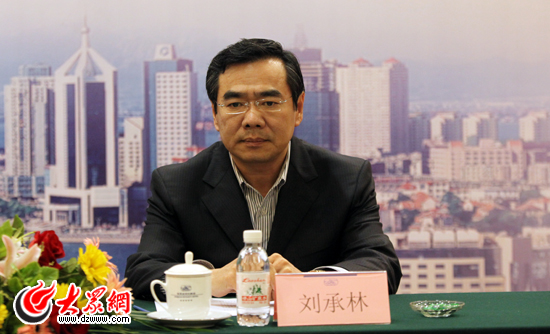 青島市政府副秘書長劉承林出席新聞發(fā)布會。(盛堃 攝影)
