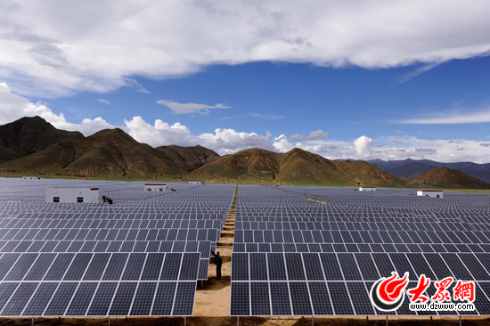 在日喀則經(jīng)濟(jì)技術(shù)開(kāi)發(fā)區(qū)一處空曠區(qū)域,52668面太陽(yáng)能電池板整齊排列,把燦爛陽(yáng)光轉(zhuǎn)化為源源不斷的電能,送入藏族百姓家。今年7月6日,一期總投資2.49億元的10兆瓦力諾太陽(yáng)能光伏電站項(xiàng)目在日喀則經(jīng)濟(jì)技術(shù)開(kāi)發(fā)區(qū)并網(wǎng)發(fā)電,這是山東歷史上第一個(gè)投資超億元的援藏項(xiàng)目,年發(fā)電量2023萬(wàn)千瓦時(shí),可滿(mǎn)足10萬(wàn)余戶(hù)農(nóng)牧民家庭全年的生活用電。在施工中,力諾集團(tuán)首次應(yīng)用世界最先進(jìn)的螺旋樁技術(shù),有效穿過(guò)地下凍土層,完成太陽(yáng)能電池板的架設(shè)、固定。