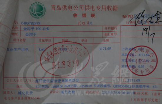2013年7月,包括陳寶成在內(nèi)的4個拒拆戶所用的水泵產(chǎn)生的電費(fèi),超3000元。