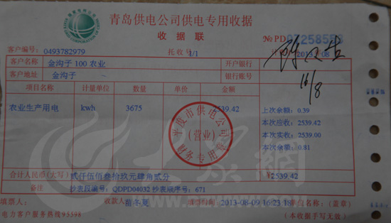 2013年8月,包括陳寶成在內(nèi)的4個拒拆戶所用的水泵產(chǎn)生的電費(fèi),達(dá)2500多元。