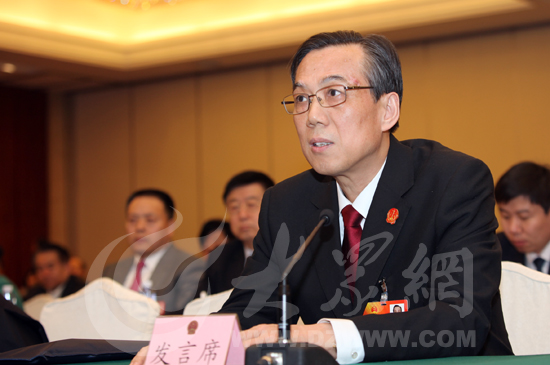 全國人大代表、山東省高級人民法院院長白泉民在會上發(fā)言。(特派記者 盛堃 攝)
