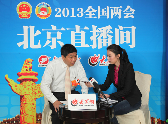 全國人大代表、山東省教育廳副廳長張志勇在大眾網北京直播室與網友連線(特派記者 韋輝 攝)