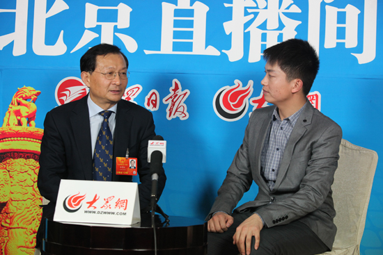 全國人大代表、青島啤酒集團股份有限公司董事長孫明波做客大眾網(wǎng)北京直播間。(大眾網(wǎng)特派記者 攝)