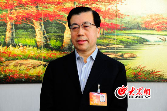 省人大代表、煙臺市委書記、市人大常委會主任張江汀在接受大眾網記者采訪。