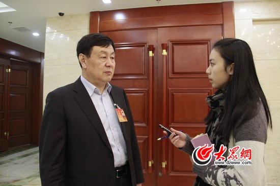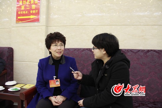 人大代表、濰坊市人大常委會副主任毛秀鳳接受大眾網記者采訪。