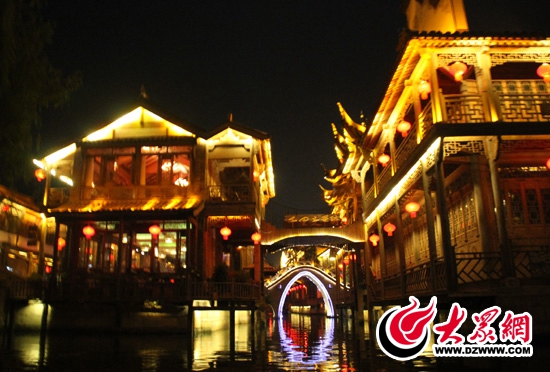 都說臺兒莊古城是尋夢的地方,夜晚則會使這個夢更加絢麗。晚上8時,記者們來到夜游采訪臺兒莊古城。夜晚的古城,與白天有天壤之別,就像是清秀的小姑娘,轉身一變成為嫵媚柔情的女郎。