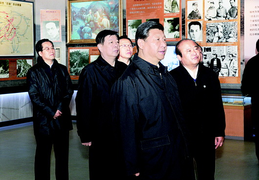 ■新聞背景:2013年11月25日上午,習近平總書記來到華東革命烈士陵園,向革命烈士紀念塔敬獻花籃,參觀沂蒙精神展,聽取沂蒙地區革命戰爭歷史介紹,并會見了當地先進模范和當年支前模范后代代表。25日下午,習近平來到臨沭縣曹莊鎮朱村,觀看這個抗戰初期就建立黨組織的支前模范村村史展,了解革命老區群眾生產生活。習近平強調,生活一天比一天好,但我們不能忘記歷史。他叮囑當地干部,讓老區人民過上好日子,是我們黨的莊嚴承諾,各級黨委和政府要繼續加大對革命老區的支持,形成促進革命老區加快發展的強大合力。