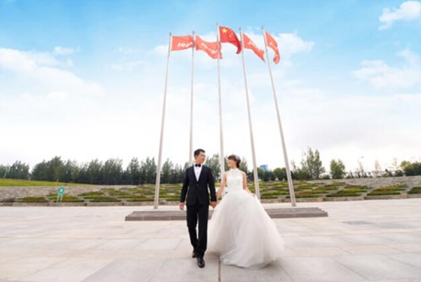 9月25日,杰瑞集團(tuán)一對新人在國旗下合影,為中國點(diǎn)贊。