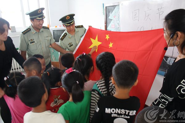 國慶前夕,煙臺邊防官兵進(jìn)校園,和小學(xué)生講解國旗的意義