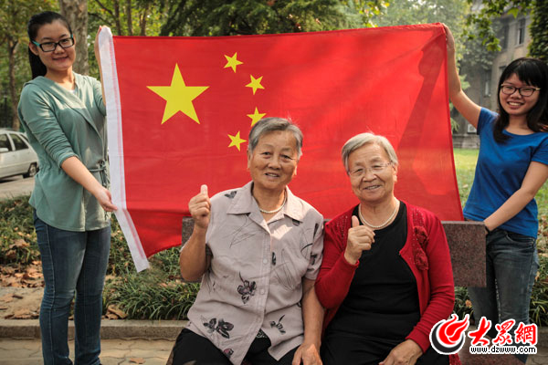 9月22日,大眾網(wǎng)“我和國(guó)旗合個(gè)影 我為中國(guó)來點(diǎn)贊”活動(dòng)正式發(fā)出征集令,此后半個(gè)月里,參與者人數(shù)迅速突破百萬(wàn),參與者的所在地遍布海內(nèi)外,實(shí)實(shí)在在地大秀了一把愛國(guó)熱情。在征集到的“與國(guó)旗合影”照片里,有十一當(dāng)天剛剛在濟(jì)南出生的“國(guó)慶寶寶”,也有年近百歲六世同堂的老人;有從省內(nèi)17個(gè)城市發(fā)來的祝福,也有中國(guó)游客赴國(guó)外旅行途中隨身攜帶國(guó)旗的“邊走邊拍”;有六旬老友在國(guó)旗下的親密攜手,也有新婚夫婦在國(guó)慶之日為愛情許下諾言。學(xué)生、出租車司機(jī)、武警、醫(yī)生……活動(dòng)參與者遍布各行各業(yè),許多人在國(guó)慶假期期間依然堅(jiān)守崗位,在工作間隙發(fā)來與國(guó)旗的合影,為中國(guó)點(diǎn)贊。