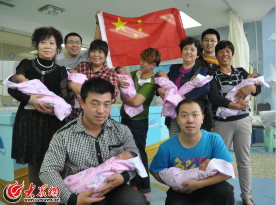 ,為中國(guó)點(diǎn)贊。十一當(dāng)天,濟(jì)南婦幼保健院迎來40位“國(guó)慶寶寶”,一號(hào)到三號(hào),該院一共有121位寶寶降生。圖片中,國(guó)旗正下方三位寶寶從左到右分別取名叫玉米、大米、小米。其中,大米和小米是雙胞胎兄弟。記者 韋輝 攝