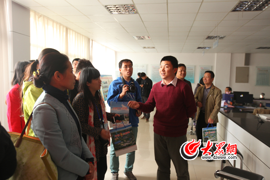 28日下午,“聚焦‘一圈一帶’——第十屆中國網絡媒體山東行”采訪團走進德州袁橋社區服務中心。圖為社區服務中心工作人員馬俊強為記者介紹工作。大眾網記者 王長坤 攝