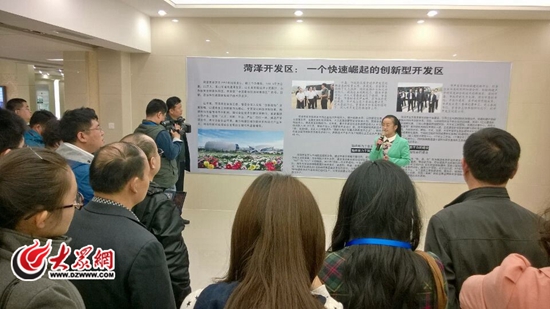 10月28日下午,聚焦“一圈一帶”——第十屆中國網絡媒體山東行采訪團來到菏澤開發區科技孵化器,落戶開發區的高新技術企業的產品在此集中展示。記者 馬俊驥 攝
