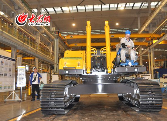 10月31日,“聚焦‘一圈一帶’——第十屆中國網絡媒體山東行”采訪團來到山東臨工采訪。圖為工作人員正駕駛著“大家伙”作業。記者 王宗陽 攝