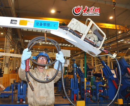 31日下午,采訪團來到山東臨工,近距離接觸這些“巨無霸”挖掘機。在聯合車間、總裝一車間,整潔有序的車間環境,以及工人們一絲不茍的操作,還有國際先進的生產流水線,給采訪團留下了深刻的印象。