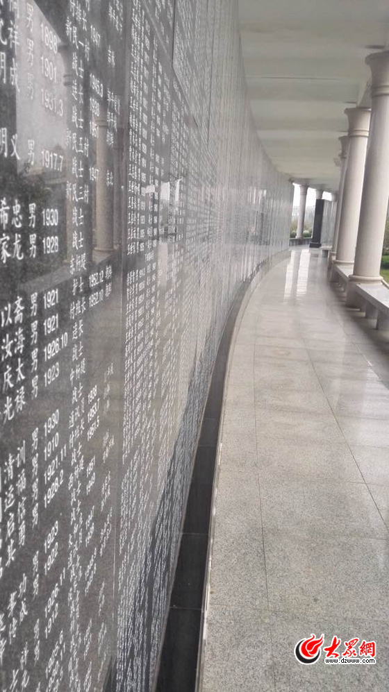 長(zhǎng)達(dá)162米的渤海革命老區(qū)烈士英名錄碑廊,四大塊黑色大理石碑上密密麻麻地鐫刻著55308名烈士的名字以及他們的籍貫、職務(wù)和犧牲地點(diǎn)。