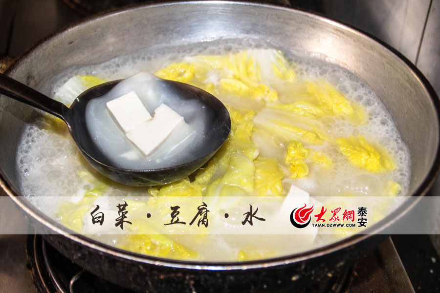 范方偉特別提醒,“三美湯”火候非常重要。火候大了,豆腐變老,白菜會失去鮮嫩口感。火候小了,豆腐夾生,湯汁也不會那么濃郁透亮。