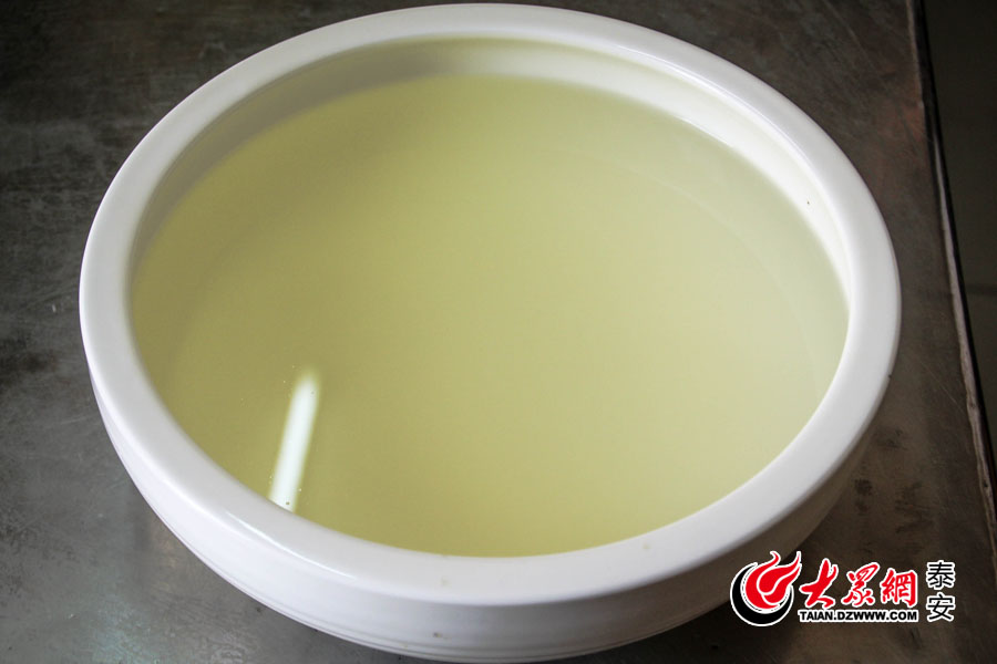 水:須得是泰山上的泉水,用泰山泉水燉成雞湯,冷卻澄凈之后做成的吊湯。