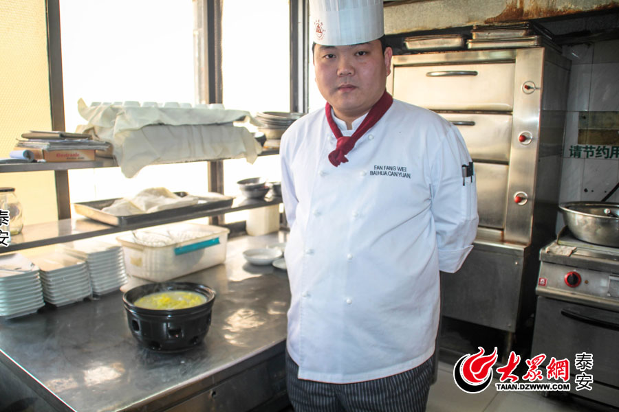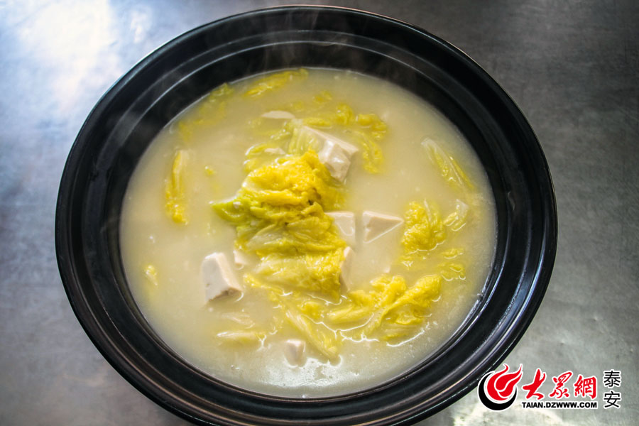 范方偉還告訴記者,做“三美湯”最關鍵的還是水,而這水,須得是泰山上的泉水,用泰山泉水燉成雞湯,冷卻澄凈之后做成的吊湯,才“配得上”湯中的白菜和豆腐。