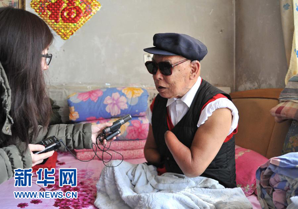 朱彥夫在接受媒體采訪  新華社記者徐速繪3月18日攝