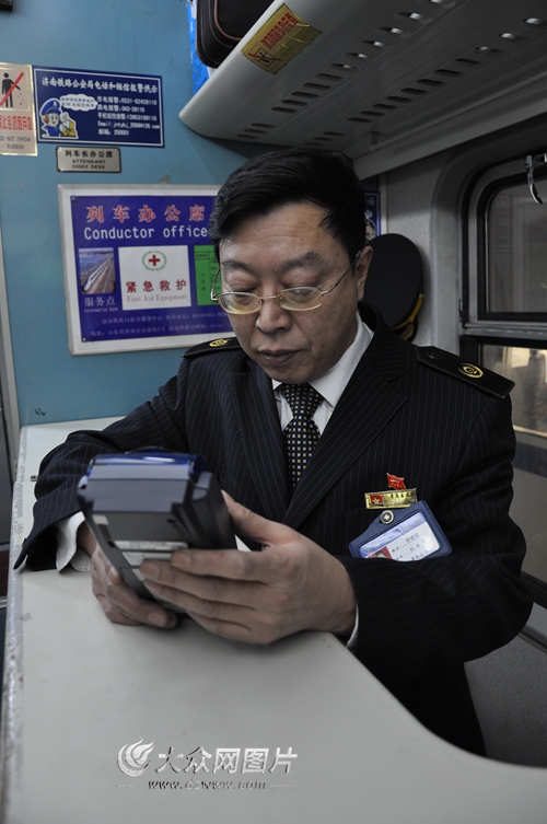 @大眾網:2月18日18:19,列車從濟南東站開出后,李建國開始查票并為旅客辦理補票手續。