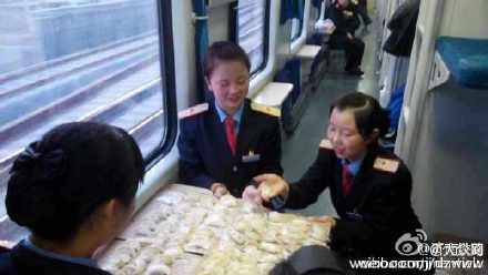 @大眾網:2月18日19:03,除夕的夜幕已經降臨,神州大地爆竹聲聲,華夏兒女喜迎春節。在這流動的列車上也不例外,老李和他的同事們除了要確保旅客平安回家,還共同為今天乘車的所有旅客準備了年夜大餐——水餃。看,純手工的大餡水餃哦~