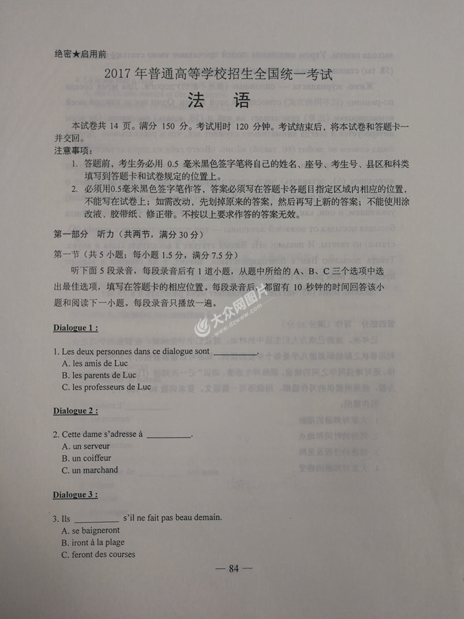 大眾網(wǎng)濟(jì)南6月8日訊 6月8日下午,2017年山東高考落下帷幕。當(dāng)天下午6點(diǎn),山東省教育廳就今年高考實(shí)施情況舉行新聞發(fā)布會(huì),大眾網(wǎng)第一時(shí)間對(duì)試題及答案予以公布。