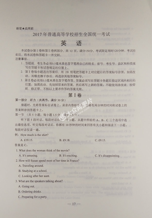大眾網濟南6月8日訊 6月8日下午,2017年山東高考落下帷幕。當天下午6點,山東省教育廳就今年高考實施情況舉行新聞發布會,大眾網第一時間對試題及答案予以公布。