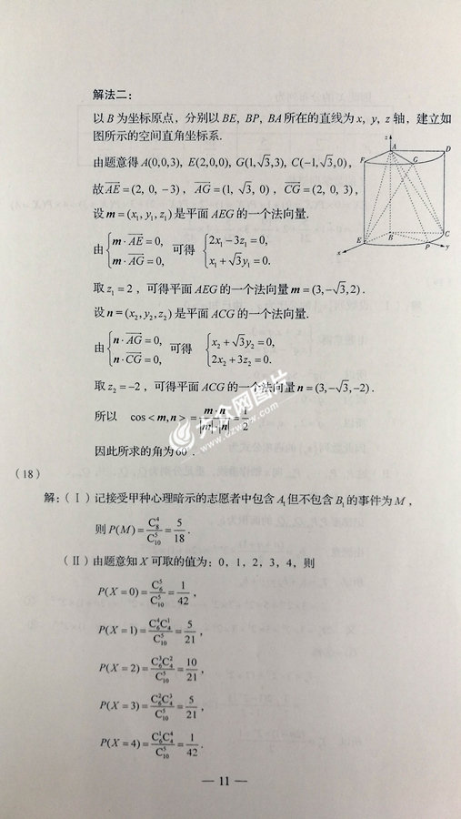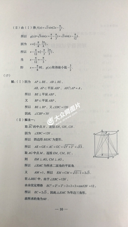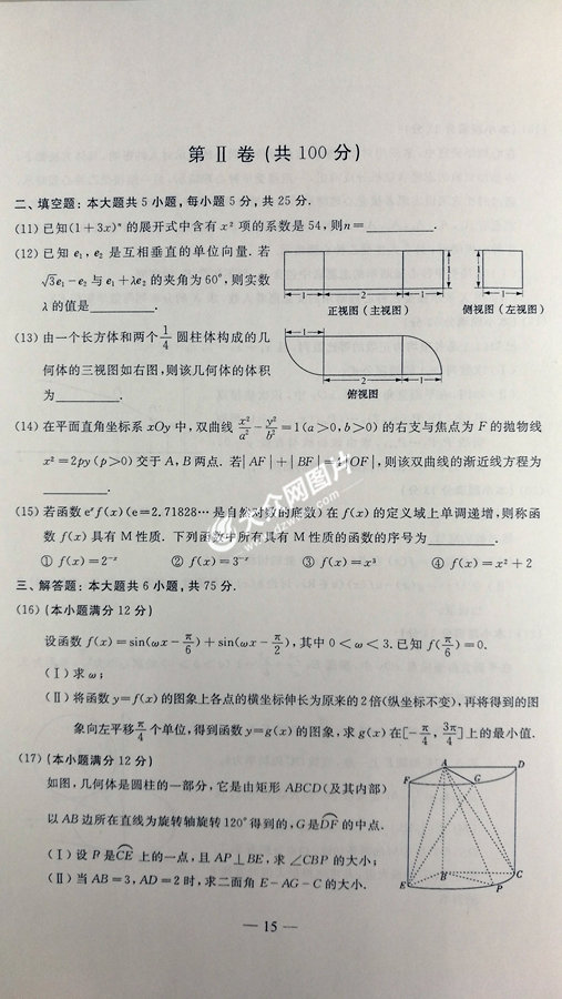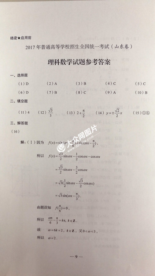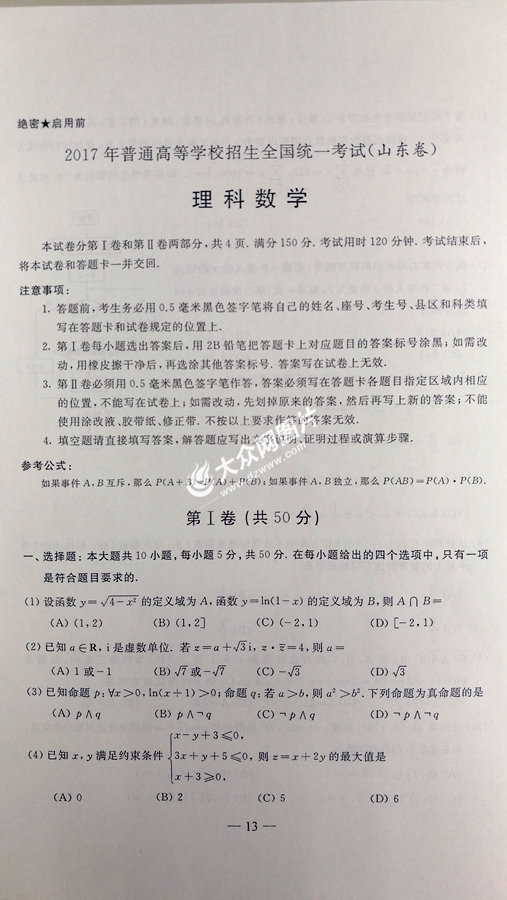 2017年山東高考數學理科試題及答案