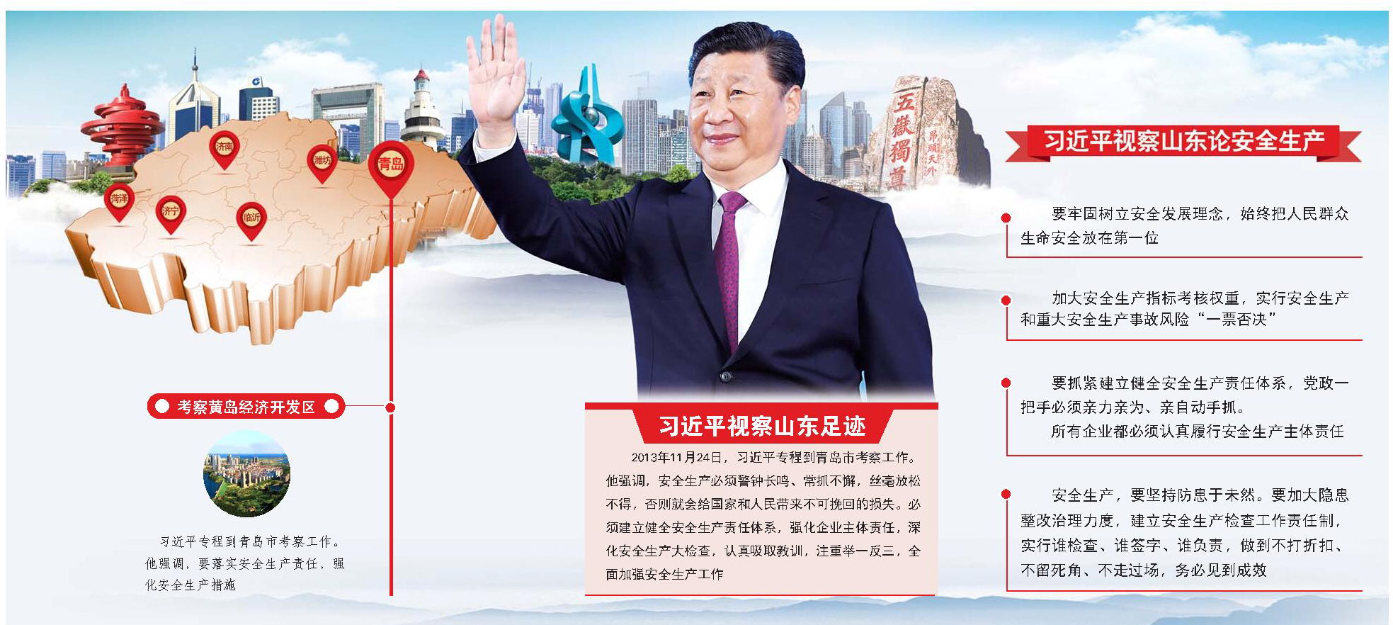 ◆2013年11月24日,習近平總書記專程到青島市考察工作。習近平強調,要牢固樹立安全發展理念,始終把人民群眾生命安全放在第一位