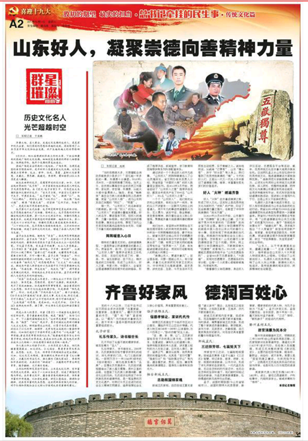 一個個“山東好人”,他們有的從農村山間里來,有的從生產一線來,有的從三尺講堂來……這群平凡崗位上的普通人,用不平凡的事跡傳遞著助人為樂、見義勇為、誠實守信、敬業奉獻、孝老愛親精神,踐行著社會主義核心價值觀,聚集起齊魯大地崇德向善的精神力量。