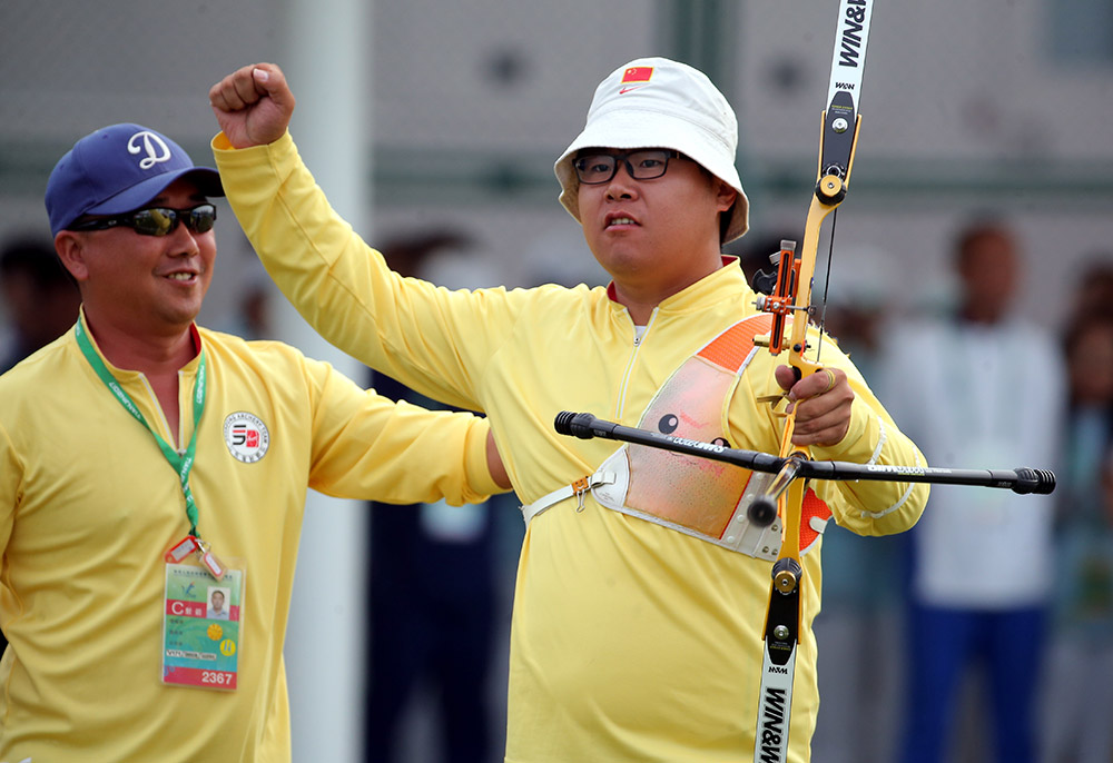 他不是“網(wǎng)紅小胖”,他是射箭場(chǎng)的大鵬,一人拿下三枚金牌,王大鵬無(wú)愧是山東射箭隊(duì)的領(lǐng)軍人物。(青島晚報(bào) 孫立 攝)
