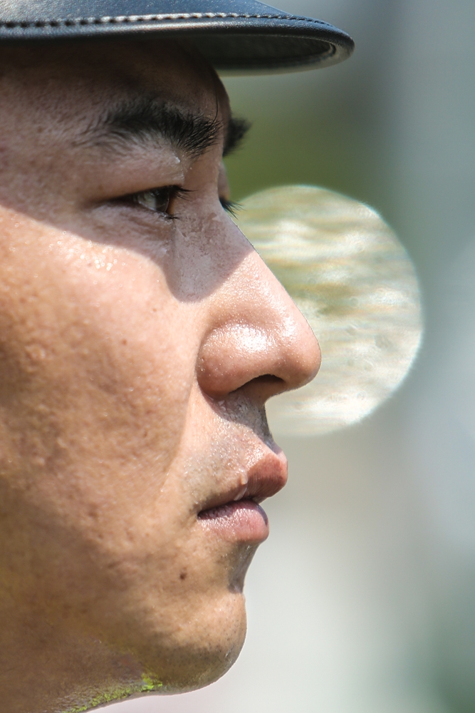 在執勤崗上,汗水順著臉頰不斷流下。