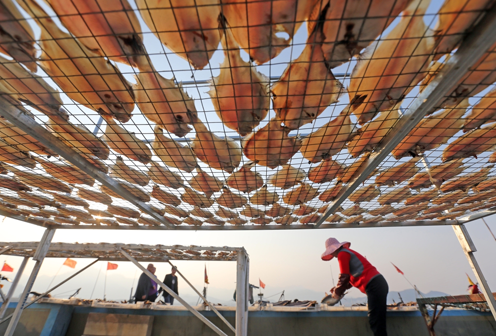 提到海鮮,大家會(huì)想到海貨的“鮮”,各種鮮活海貨滿足著吃貨們的胃口,而如何把海鮮的鮮味盡可能地保存長(zhǎng)久,以至于在禁漁期等時(shí)節(jié)依然可以品嘗到美味的海貨,是人們共同的心愿。于是一種別具青島特色的“甜曬魚”出現(xiàn)了。伴隨著魚大量上市、價(jià)格也處于洼地之時(shí),漁村中的村民們趕緊忙碌起來(lái),將收上來(lái)的鮮魚曬干。深秋中的島城正是加工甜曬魚的好時(shí)候,2017年10月31日,記者來(lái)到制作甜曬魚的代表地嶗山區(qū)的港東村,探訪這種制作甜曬魚的民俗。